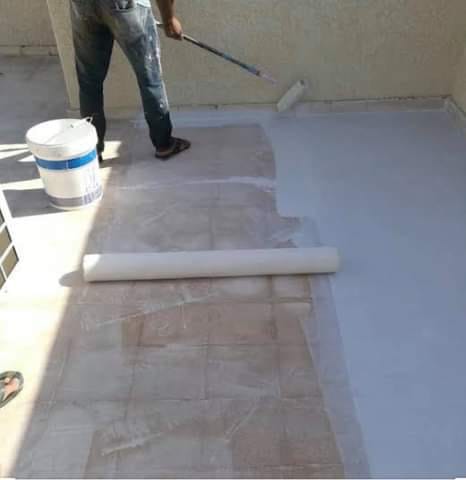 5.البدا في اعمال فرد طبقات العزل الاولي بع\د معالجة سقف السطح ومعالجة الشروخ والتشققات