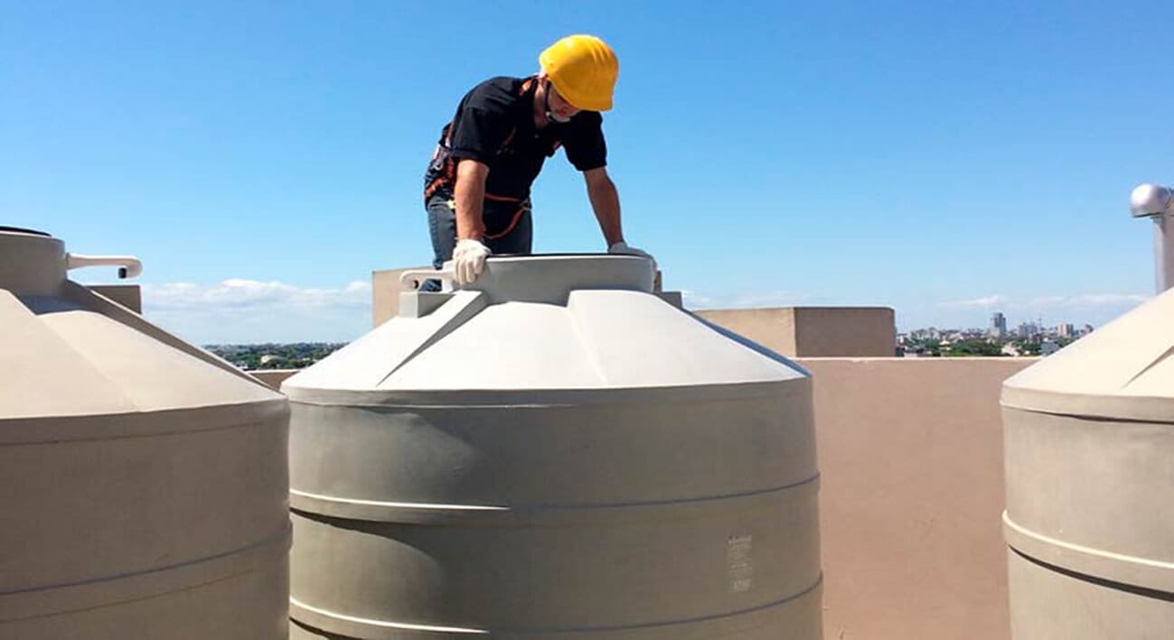 - ثم ينظف الخزان من كل الترسبات الموجودة داخلها.
